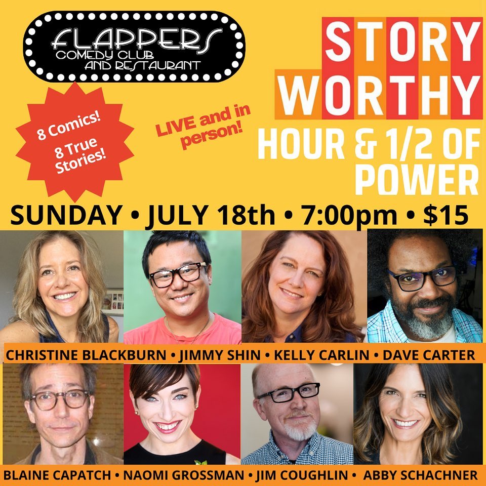 Post published:July 17, 2021 Whatcha doin’ this weekend? I’m telling stories on stage Sunday at @flapperscomedy! Join me and my old friends, @dcarter_comedy & @mrjimcoughlin (as well as some new ones) for @storyworthy! #flapperscomedyclub #storytelling #liveshow #sundayfunday