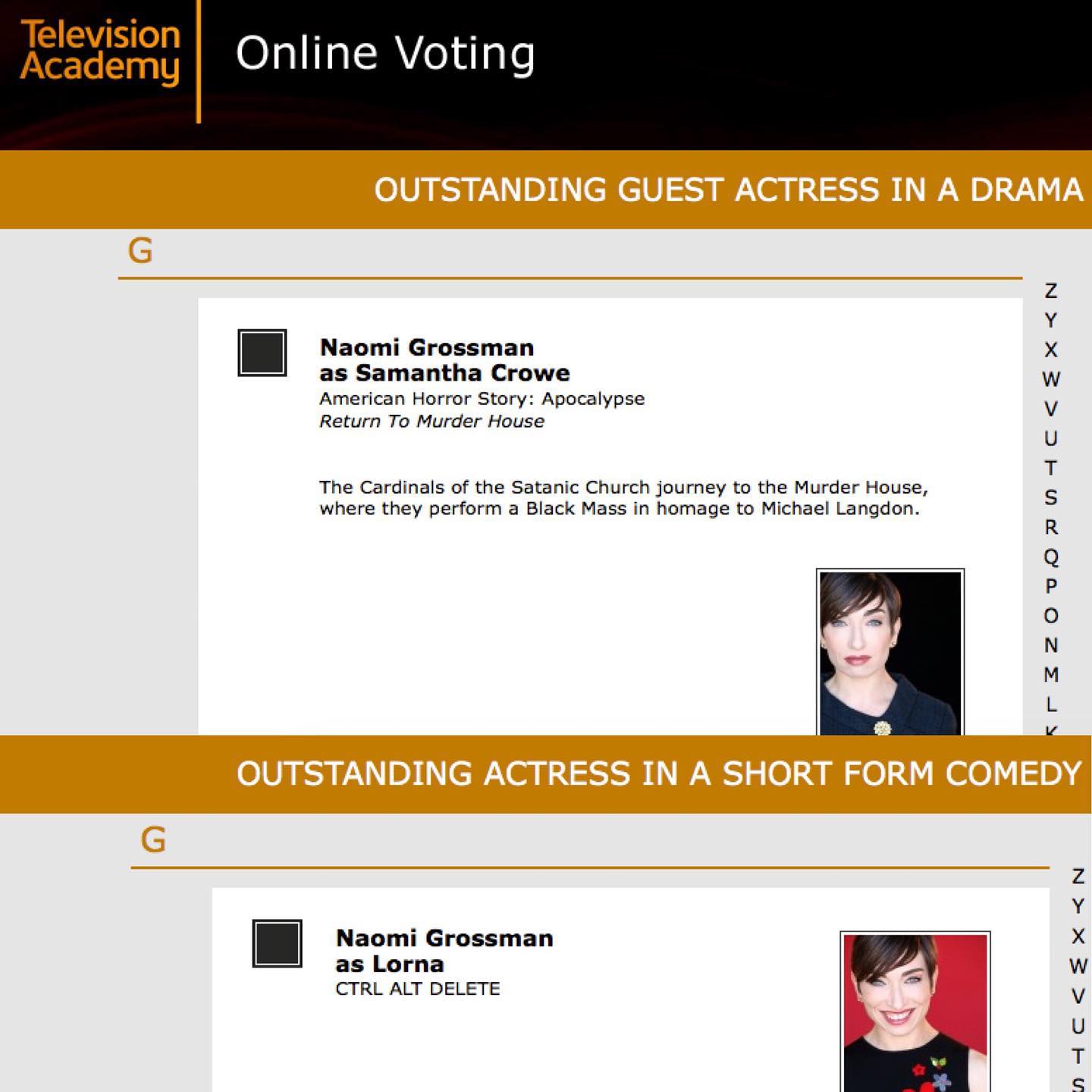 The polls are OPEN!! TODAY marks the 1st day of the 1st round of Emmy voting, and this year, Television Academy members have not 1, but 2 chances to click my box black! Do it!!◼️◼️ #vote #fyc #foryourconsideration #AHS #ctrlaltdelete #actorslife Post published:June 10, 2019